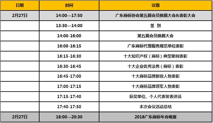 拟在2019年2月下旬召开的广东商标年会暨第五届会员换届大会上举办颁奖仪式。