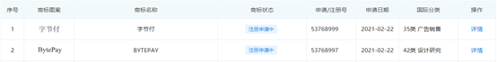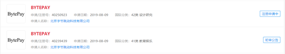 字节跳动申请“字节付”“BYTEPAY”商标