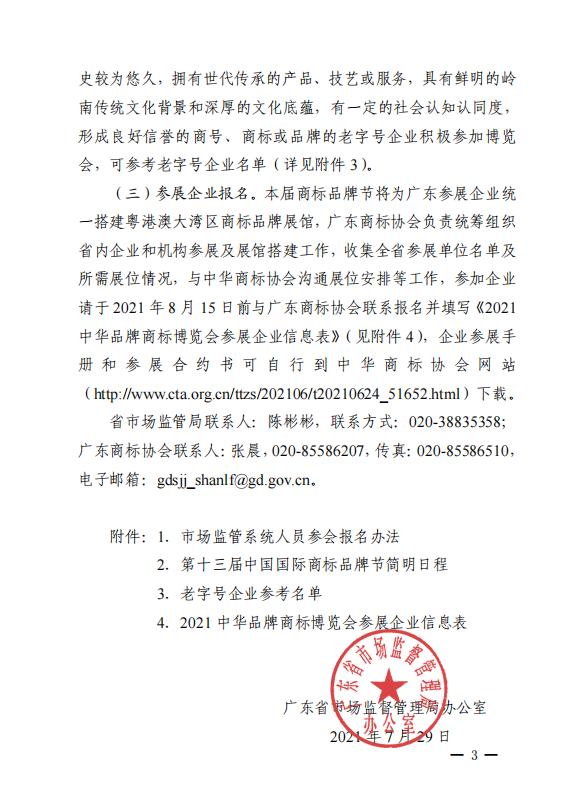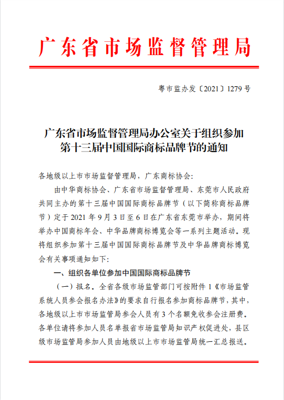 广东省市场监督管理局办公室关于组织参加第十三届中国国际商标品牌节的通知