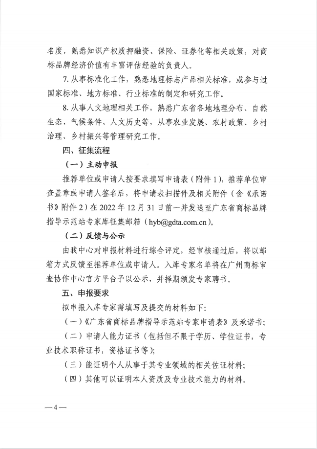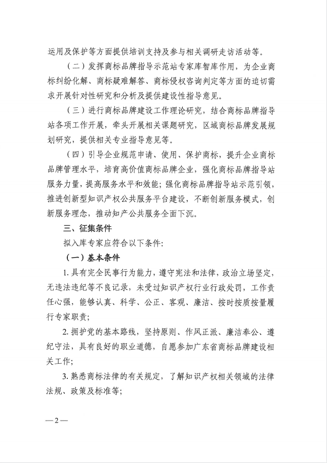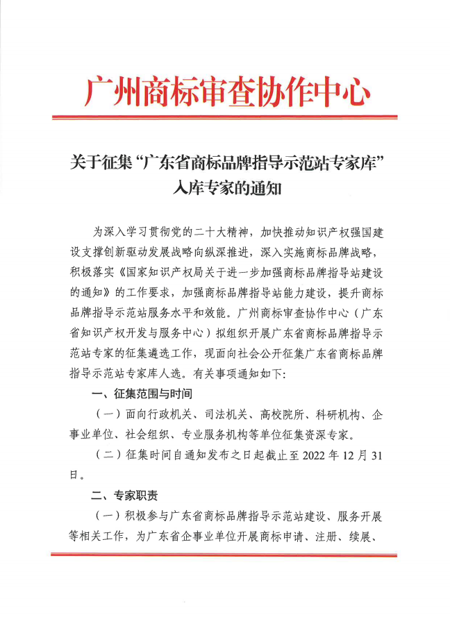 关于征集“广东省商标品牌指导示范站专家库”入库专家的通知