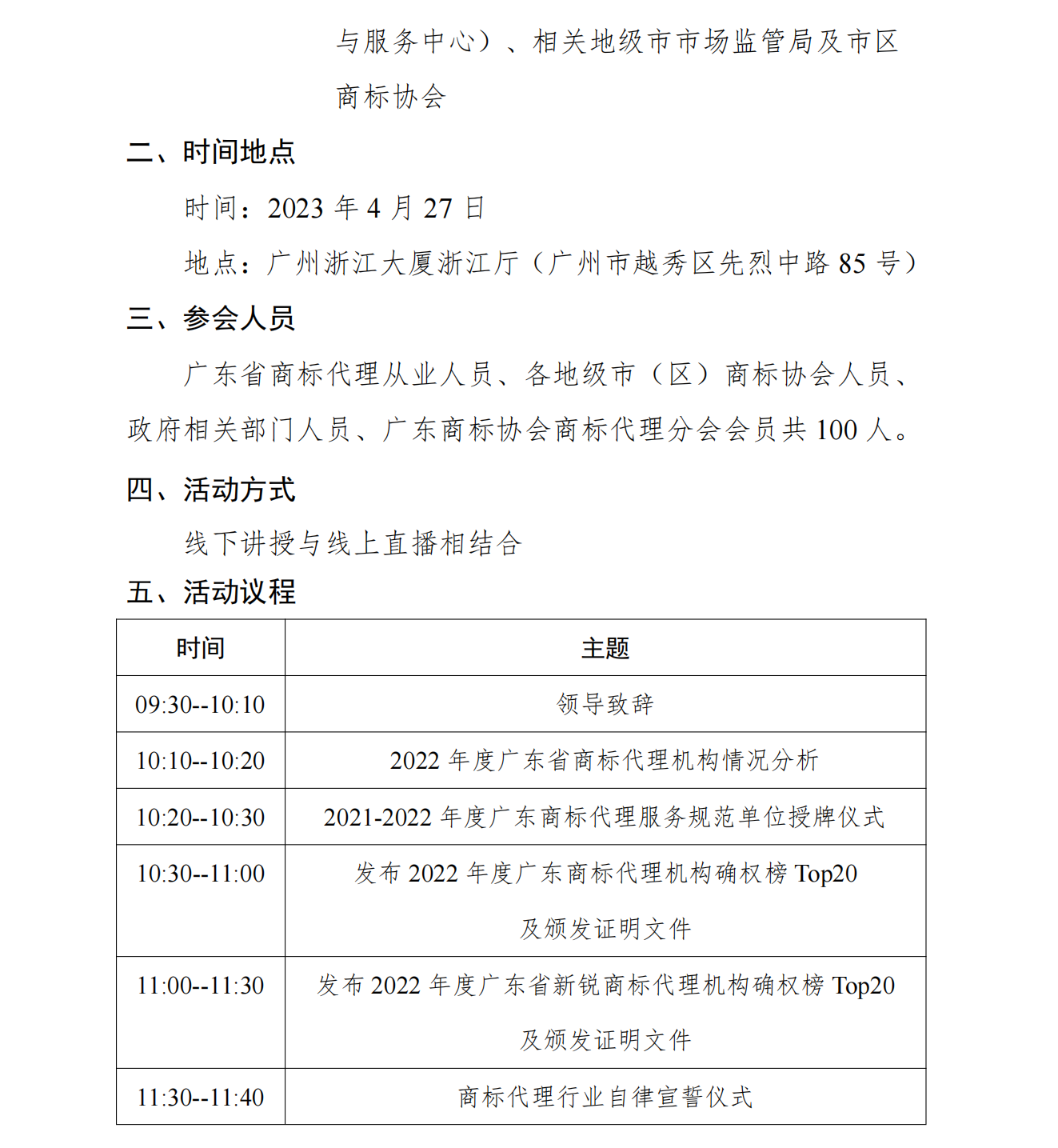 11:00--11:30 | 发布2022年度广东省新锐商标代理机构确权榜top20 及颁发证明文件 |