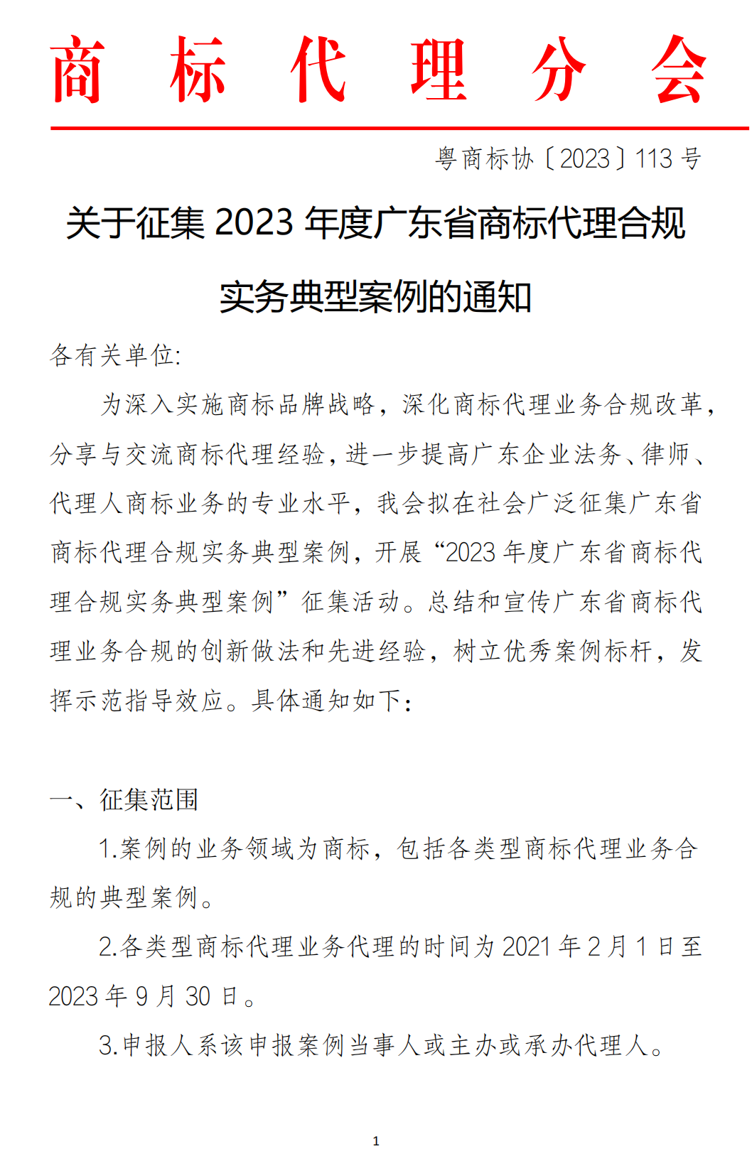 关于征集2023年度广东省商标代理合规 实务典型案例的通知