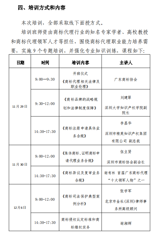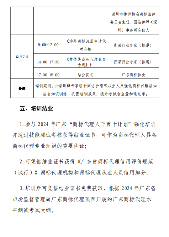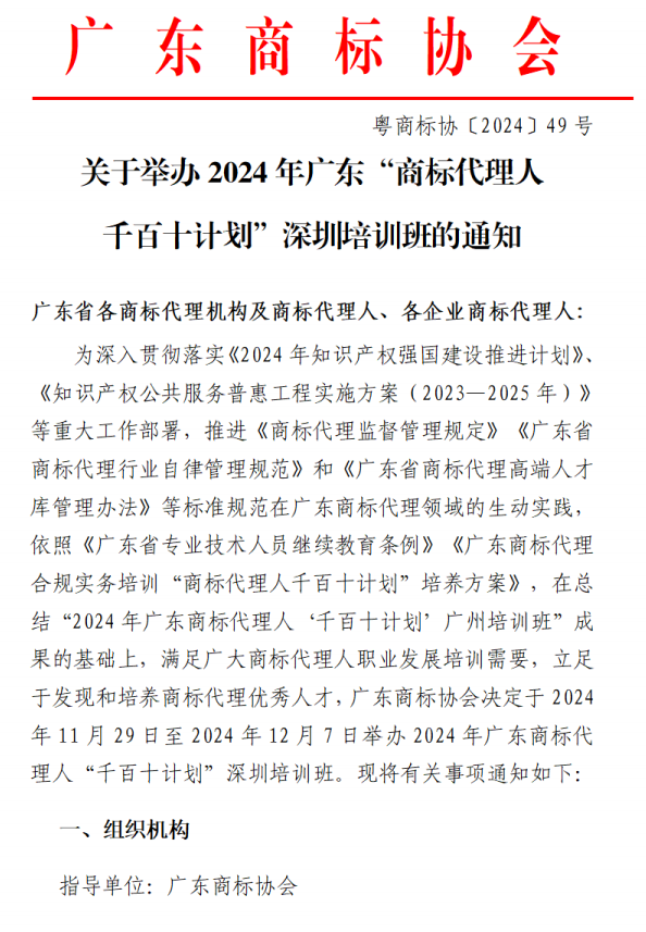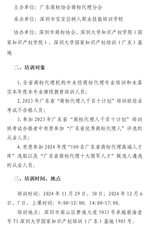 关于举办2024年广东“商标代理人 千百十计划”深圳培训班的通知