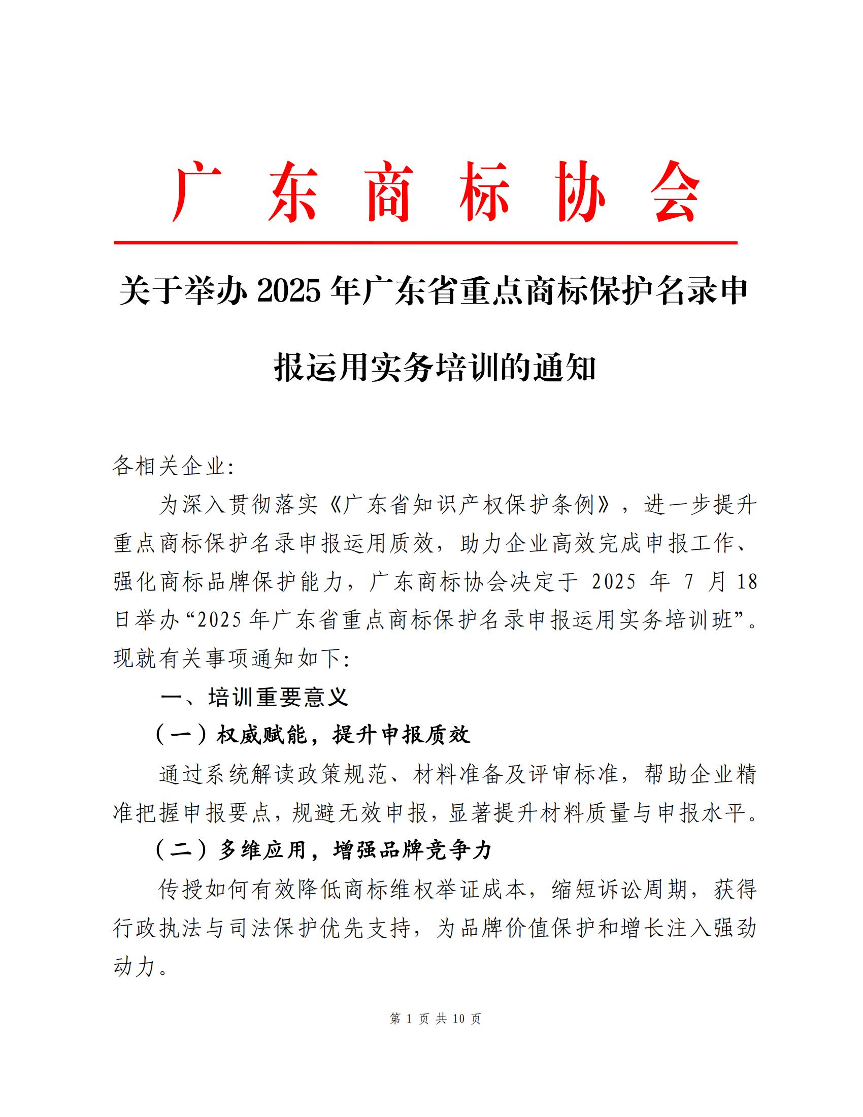 关于举办2025年广东省重点商标保护名录申报运用实务培训的通知