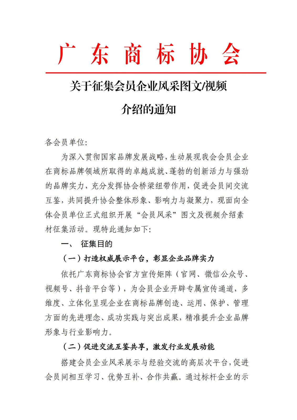 关于征集会员企业风采图文/视频介绍的通知