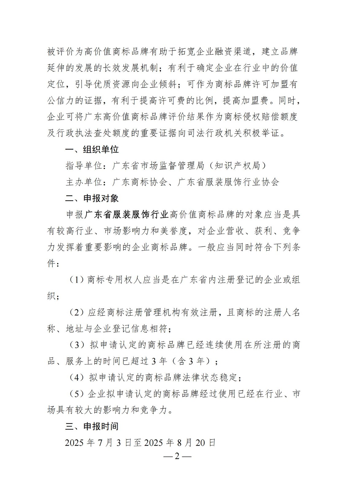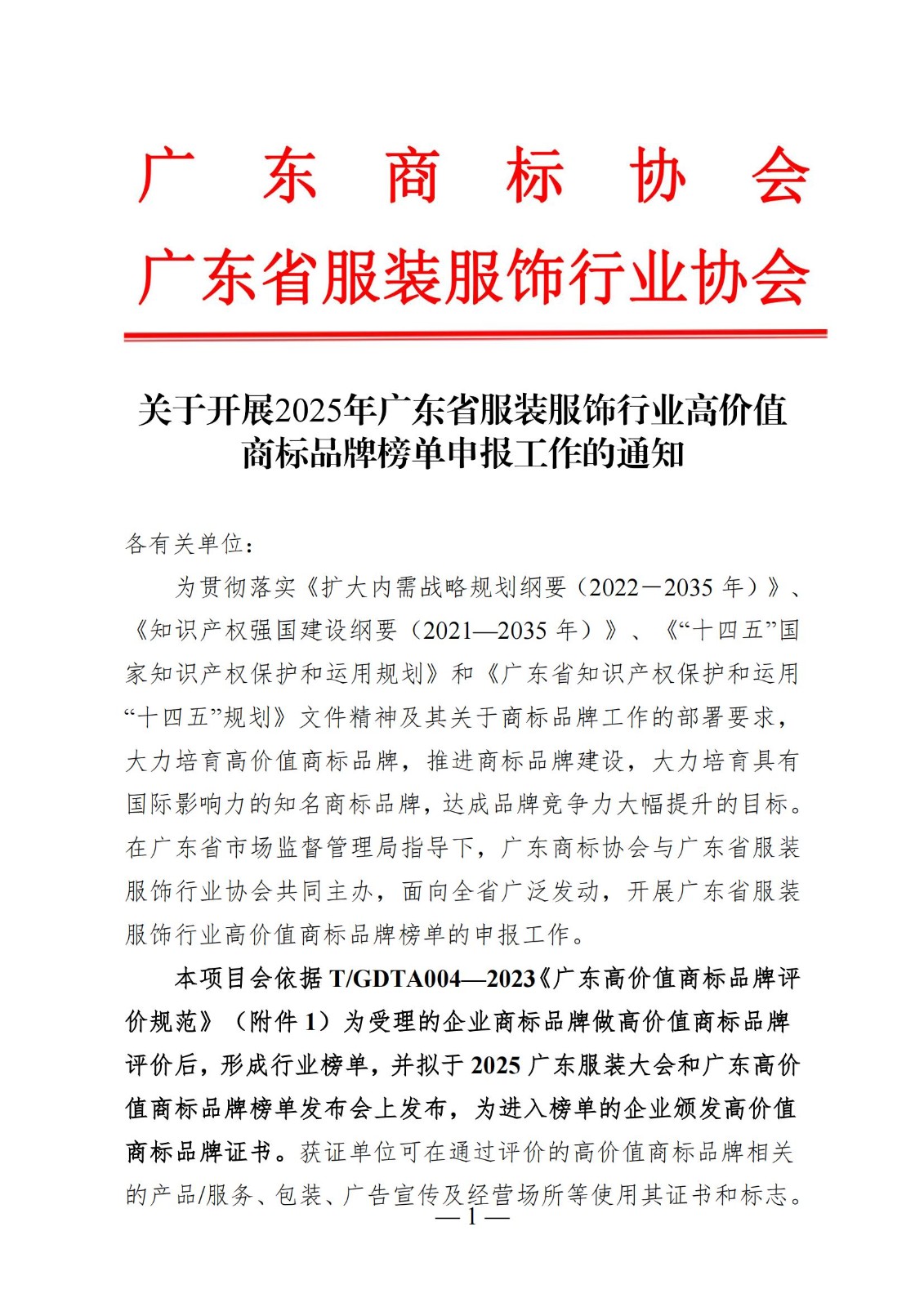 关于开展2025年广东省服装服饰行业高价值商标品牌榜单申报工作的通知
