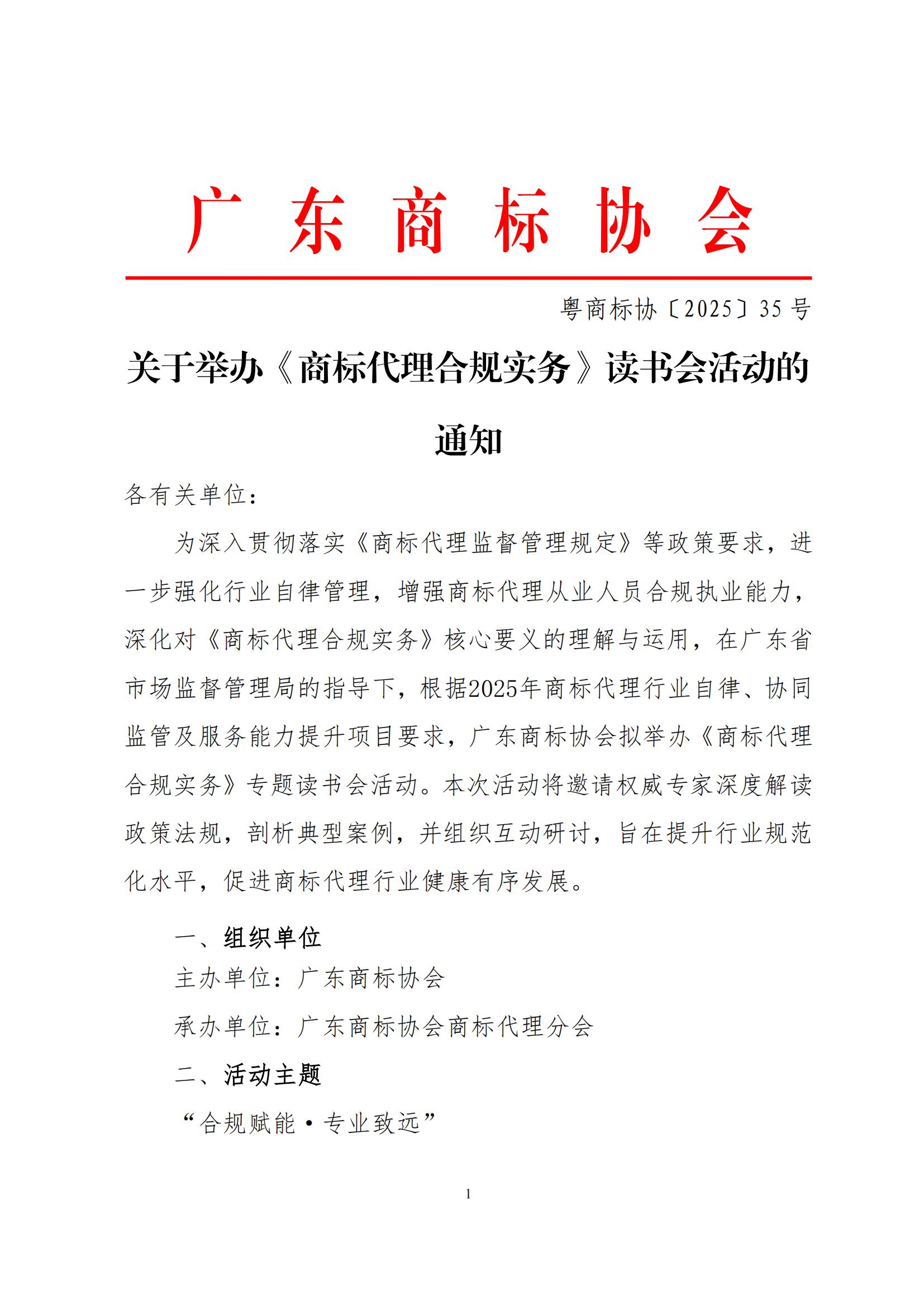 关于举办《商标代理合规实务》读书会活动的通知.pdf