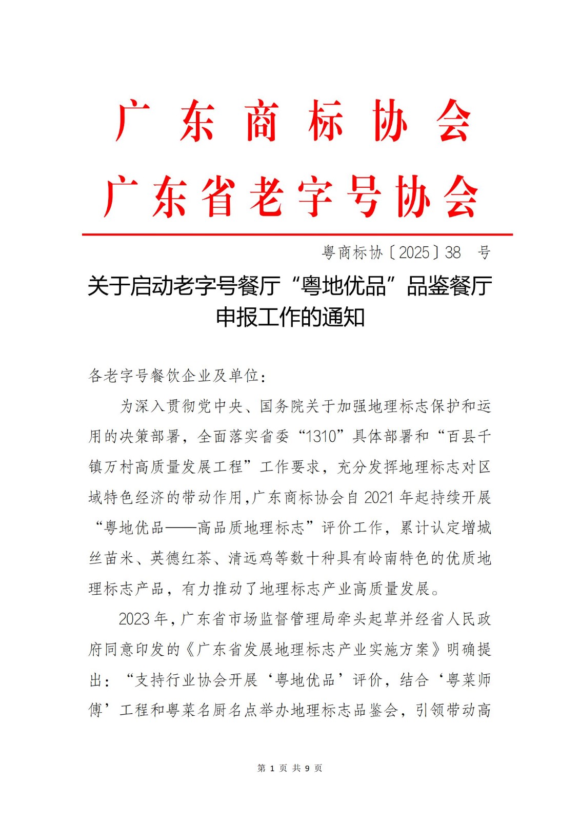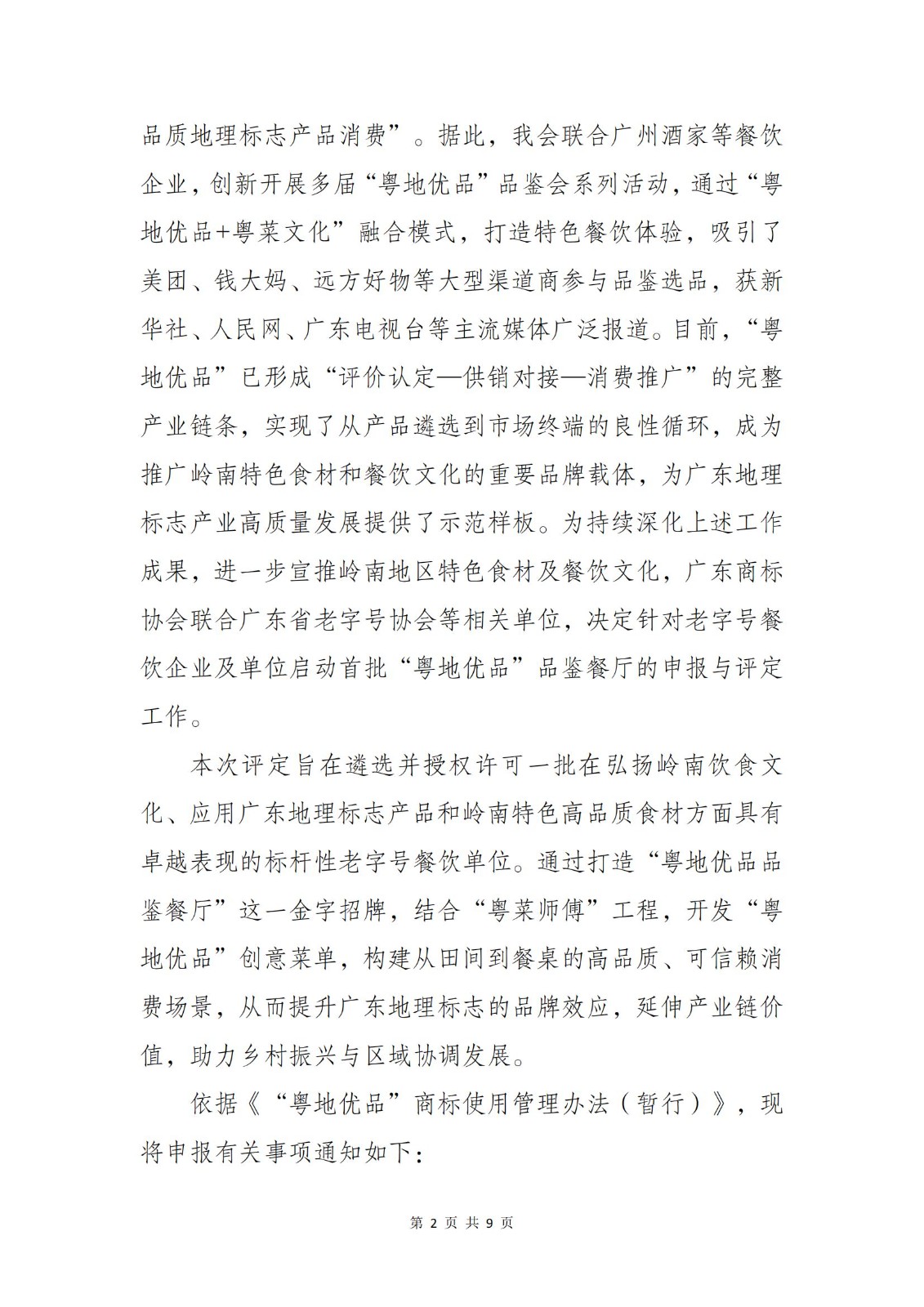 关于启动老字号餐厅“粤地优品”品鉴餐厅的申报通知
