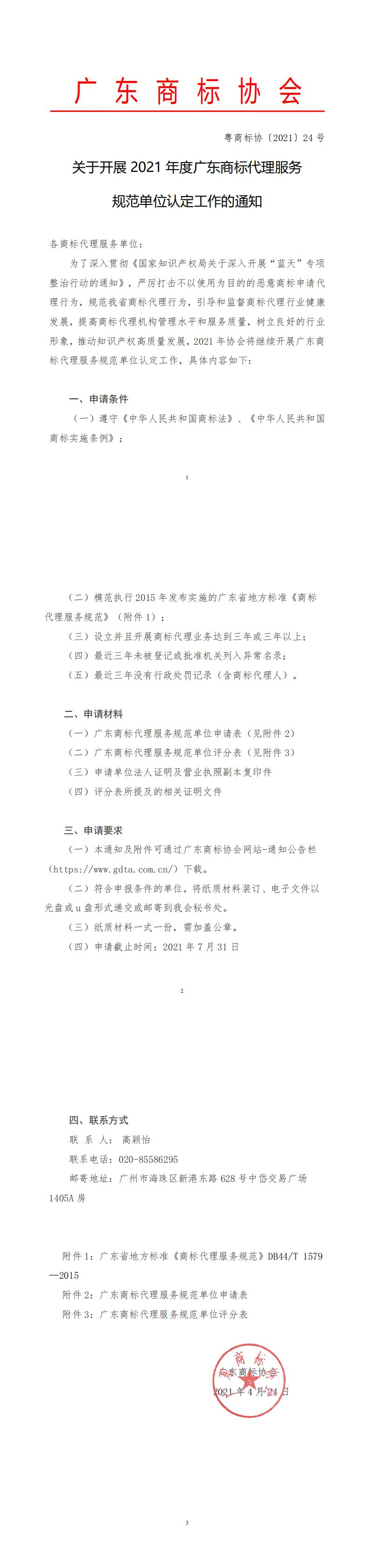 关于开展2021年度广东商标代理服务规范单位认定工作的通知