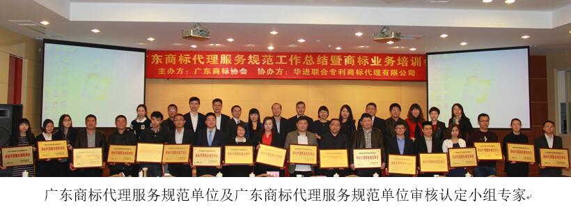 会上,广东省工商行政管理局副局长、广东商标协会会长钱永成做了关于广东商标代理服务规范的工作总结,充分肯定了广东商标代理服务规范审核认定工作,并对如何加强商标代理行业自律,提升商标代理机构服务水平提出了要求。接着由广东省工商行政管理局商标处处长、广东商标协会常务副会长林方宣读了第一批广东商标代理服务规范单位名单(名单附后)。据了解,广东商标协会将对此次审核认定的商标代理服务规范单位加强管理和积极推广,倡议全省企业优先采用商标代理服务规范单位的服务,提高商标代理机构的服务能力,为申请人提供高效的商标法律服务。2016年下半年将继续发动全省商标代理机构积极申报广东商标代理服务规范工作。