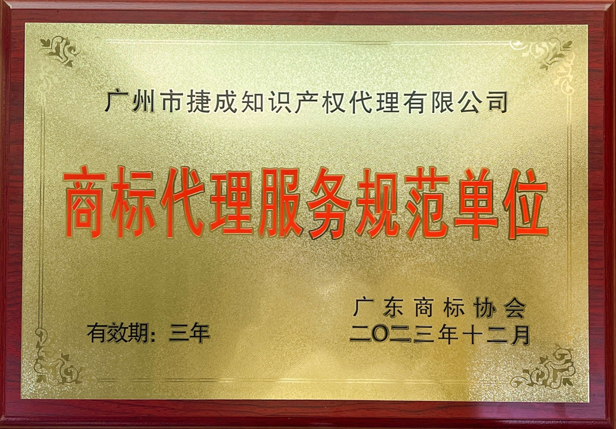 (广州市捷成知识产权代理有限公司2023年被延续认定为广东商标代理服务规范单位)