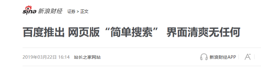 据悉,2017年7月,百度公司开发并上线了一款搜索APP——简单搜索,其以简洁清爽的视觉体验,高效简单的操作交互,以及依靠语音搜索、图像识别、语音直达、多轮对话、语音播报等多种新一代搜索功能吸引了大量用户,且展示的内容完全没有广告。