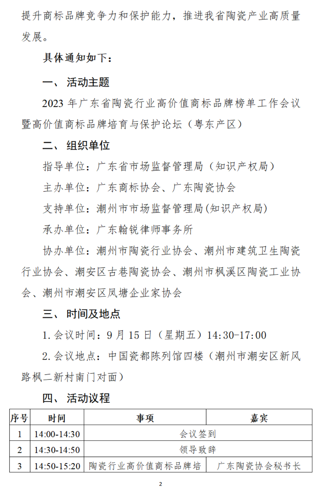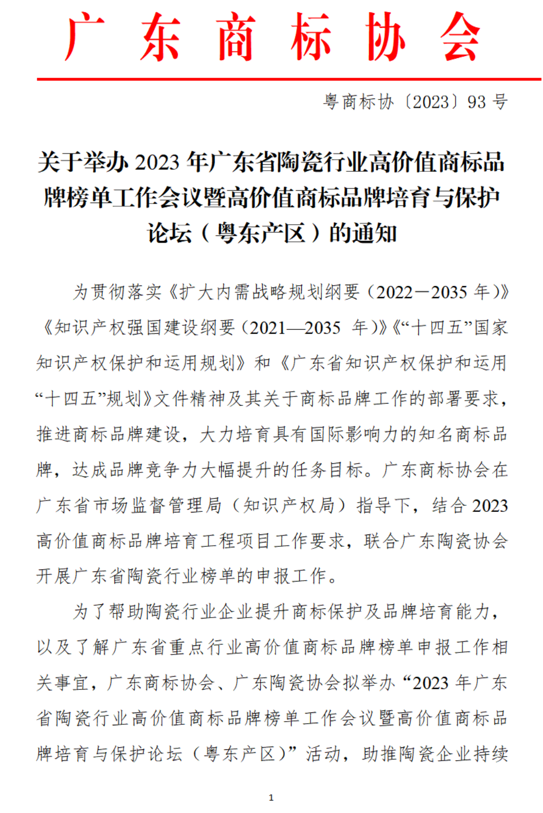 关于举办2023年广东省陶瓷行业高价值商标品牌榜单工作会议暨高价值商标品牌培育与保护论坛(粤东产区)的通知
