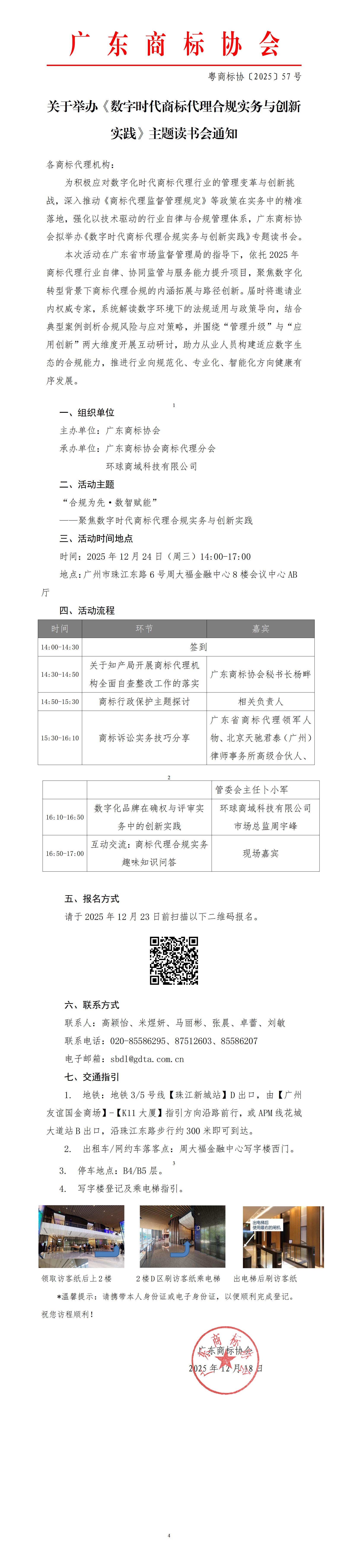 关于举办《数字时代商标代理合规实务与创新实践》主题读书会通知