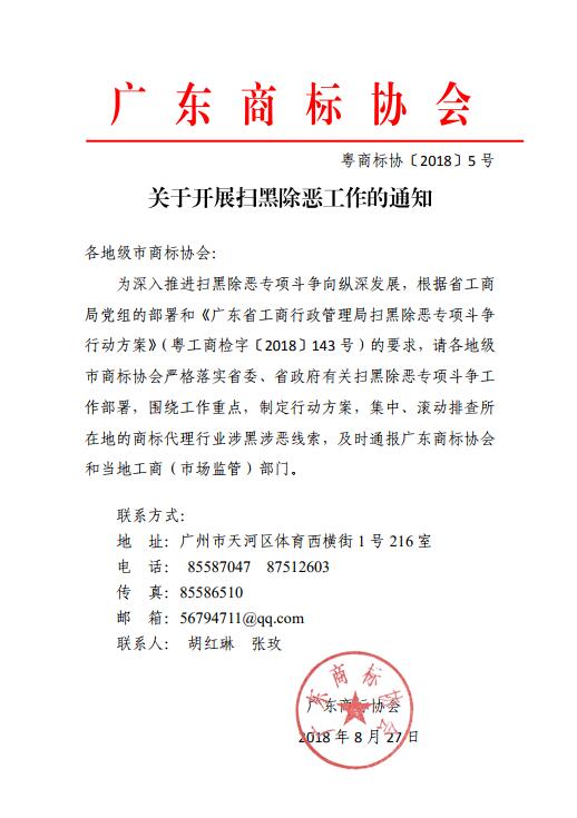 关于开展扫黑除恶工作的通知(地级市商标协会)